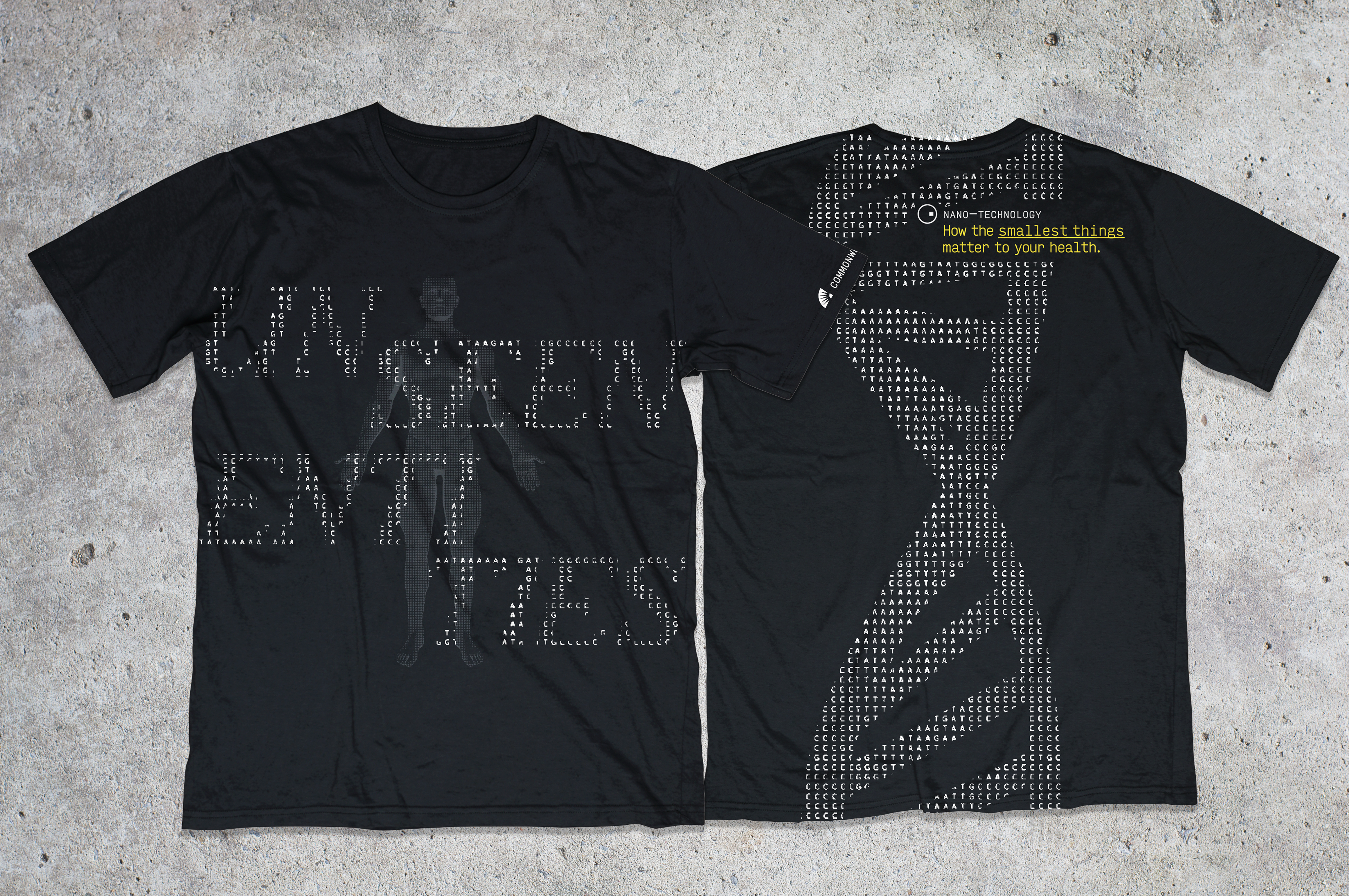 I was consistently drawn to gene sequencing—the biological building blocks of genes using A, T, C, and G. "Entities" implies something larger than life, relaying just how impactful nano-technology is despite its small scale. Then it was clear: we are all made up of these building blocks!