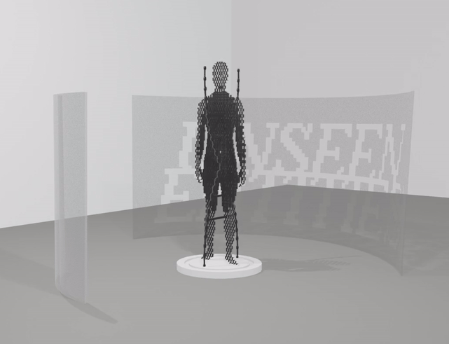 To reflect the animated poster, the signage rotates on it's platform and is made up of square "building blocks". The chosen material of translucent plexiglass continues the visual language of depth.